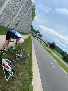 On Monday, I rode my new bike with Marty just over 21 miles. Somewhere 7 miles or so near the end, I stopped for an hour long Zoom work meeting. That’s work-life balance, right? <laughter> Honestly, being able to join meetings anywhere I have cell service is one of the bonuses of my current my job being [partially] remote. I have remote meetings with colleagues all over the United States, who seem to find it quite funny that I ride my spin bike during meeting, hike or ride, etc. I’ve also travelled with this company and the last–I’ve had some amazing opportunities to cycle rail trails and hike in some really amazing places! I haven’t missed a day of work since COVID began– I am truly blessed.