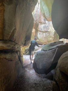 Once you get to the top, it’s not your typical mountaintop. The view is grand, but you’ll also find amazing rock formations that feel more like underground caverns. The Channels are made from sandstone formed approximately 400 million years ago, according to the Preserve website. The Channels you see were formed likely due to permafrost and ice wedging that split seams into the sandstone.