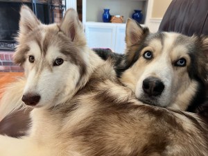Watching them together got me to thinking about a million things. If only people got along as well as huskies. There would be no divorce or war. Huskies want to get along with everyone. Humans? We just suck sometimes.