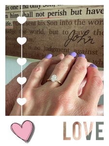 Marty picked up my ring on Friday. It’s really kind of cool to have been able to pick out diamonds. We narrowed them down together and then Marty made the final choice. He picked the best one, of course. He captured my love of sparkle perfectly!
