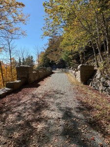 The carriage roads were built between 1913 and 1940. Visitors toured the countryside by horse and buggy back in the day. It’s pretty cool riding on these roads while hiking about the history of the area!