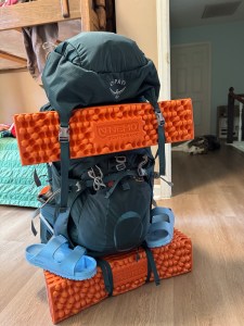 I’ll be trying out my Big Agnes Fly Creek UL 850 RDS Ultralight 25º Sleeping Bag on this trip. I used my Big Agnes Fly Creek 50º zip quilt for the adventure last weekend. My North Face bag was purchased before a kayaking camping trip many years ago. It was on sale and they only had it in long. It is not an ultralight bag, though it is real down. We’ve been backpacking enough that I decided to get a sleeping bag that’s my size AND lighter. I will also use this in our camper. Nothing else in my bag has changed. The extra weight is all of my food and half of Ghost’s for the trip.