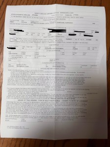 I pulled over and he came to the window. I had my hands on the steering wheel. In North Carolina, you have the duty to inform law enforcement that you are a concealed carry permit holder. I informed him and he asked for my info. I gave him my license, proof of insurance dated 3-1-25 through 3-1-26 and the valid registration. The officer told me that my insurance was expired. I had handed him both the previous year and the current year. He looked at them both and still said it had expired. I did not have my reading glasses with me, so took his word for it as I thought, “I KNOW I put the new insurance card in the car when Joann sent it!” This is important for later.