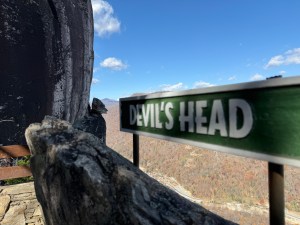 From the top of Chimney Rock and its many lookouts, you can see the devastation and where the new roads have been built to replace the washed out roads. We went to the top of Chimney Rock, saw Devil’s head and climbed up to Exclamation Point. It’s mostly stairs built into the mountain with very little traditional trail. The views are gorgeous.