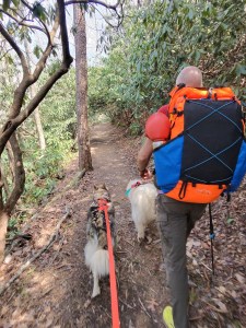 Yesterday, we traveled up to Hungry Mother State Park in Virginia to get 6 miles of backpacking in. With 107 days until Maine, we need to get more miles under our belt. We had originally planned to backpack 17 miles on the Foothills Trail this weekend, but Sean had to go out of town, so we are dog sitting our grand dog and we aren’t quite sure she would settle in the tent at night. We changed our plans so that we could care for her here at the house. Of course we wouldn’t leave her alone for an entire day, so she hit the trail with us yesterday.