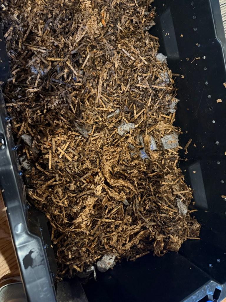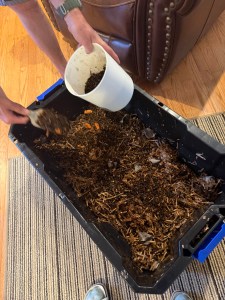 Another exciting thing we started: worm composting. We already have a traditional composting bin and a Lomi composter. I told Marty the other day that I have always wanted to have a worm composting bin. That very day, he built one out of plastic totes! We got worms from Uncle Jim’s, and this week it got going. We don’t use pesticides on our garden and do our best to use natural fertilizer. Worm castings will be a great addition to our compost and compost tea that we already use. So excited to add this to our gardening adventures. Worms are fun.