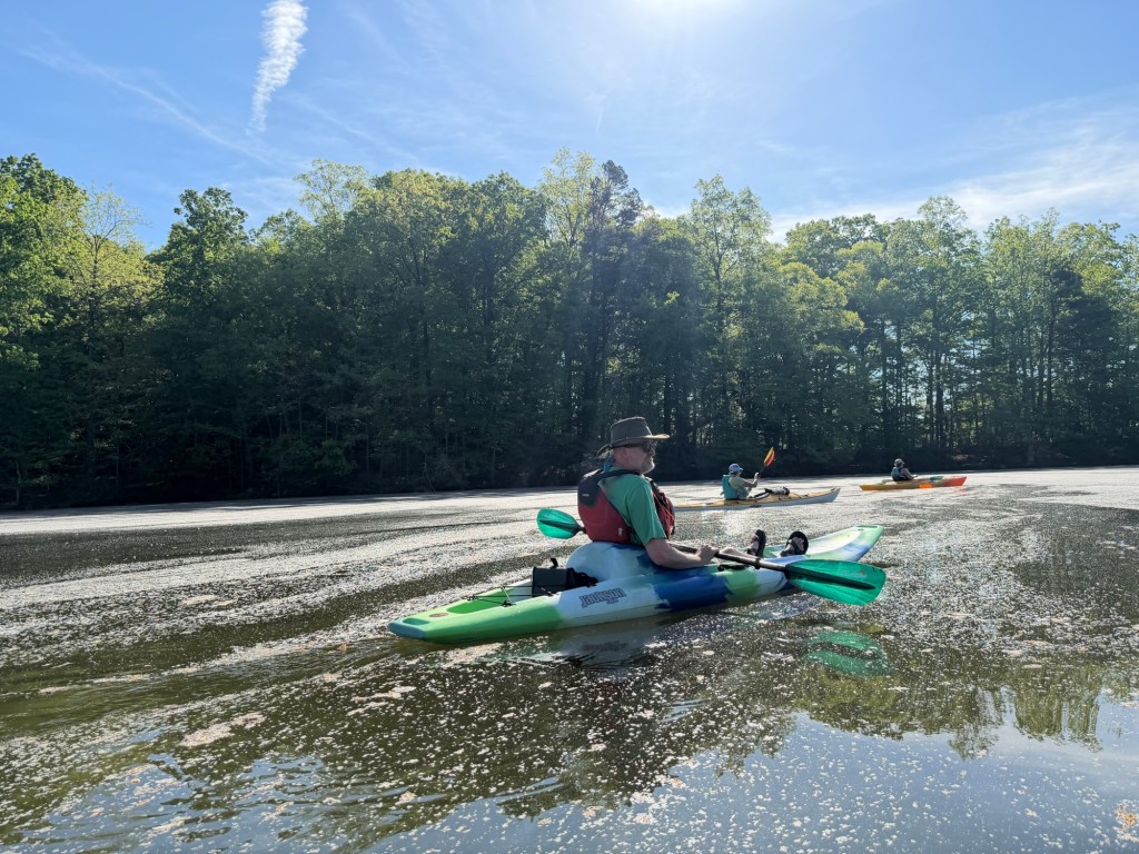 Yesterday we went to a lake we didn’t even know existed. Lake Lucas in Asheboro. It is a quaint little lake with a great ecosystem! We saw a pair of bald eagles, several herons, and a couple of turtles. The geese were really loud in one area of the lake. We paddled 6 miles yesterday in the beautiful 89º weather. Afterward, we ate at the Flying Pig, went to Walker’s shoe store, and ended the trip with a snowball. It was a great day with friends.