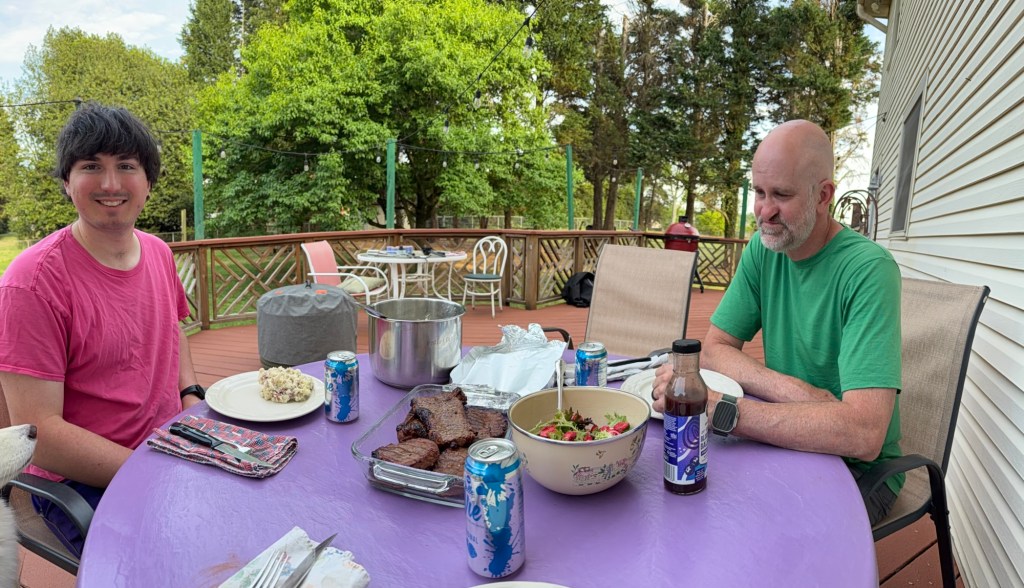 It’s been an eventful week at the Biggs-Curran household. Sean was inducted into Tau Beta Pi, the engineering honor society. Only about 15% of engineers get in. It is based on GPA and is quite prestigious. We went kayaking in the morning and celebrated his accomplishment by grilling steaks last night. So proud of him! He also became a professional engineer this year, as well. He has lots to be proud of.